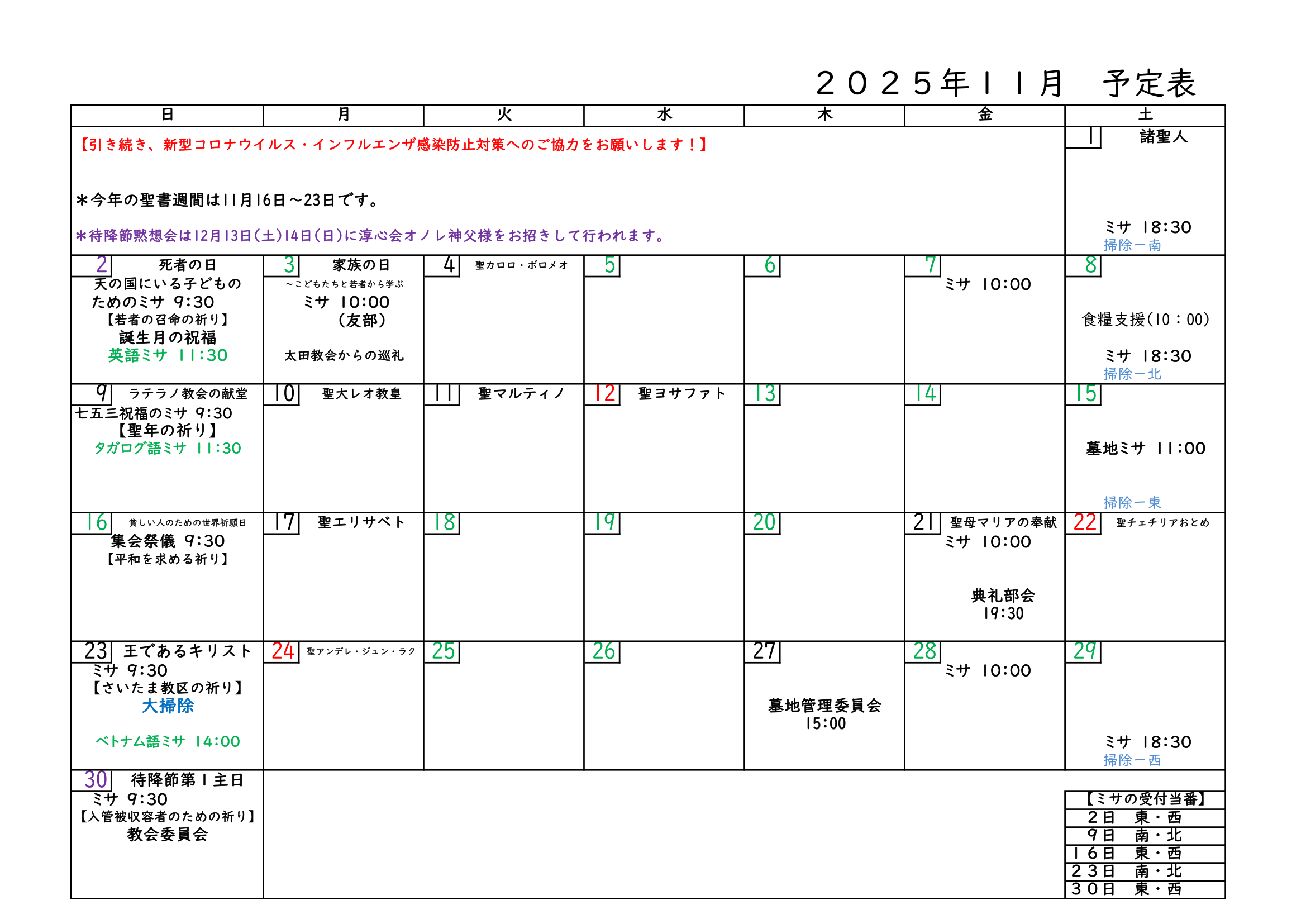 今月の予定 ミサ、勉強会、各月ごとの行事予定などを定期更新しています。 2 Contents1. 2025年 12月 予定2. 2025年 11月 予定 2025年 12月 予定 2025年 11月 予定